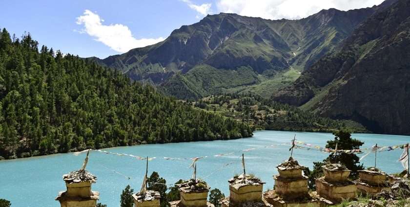 Phoksundo Lake sits at nearly 3,600 metres, its intense turquoise colour shaped by glacial minerals and depth rather than algae.